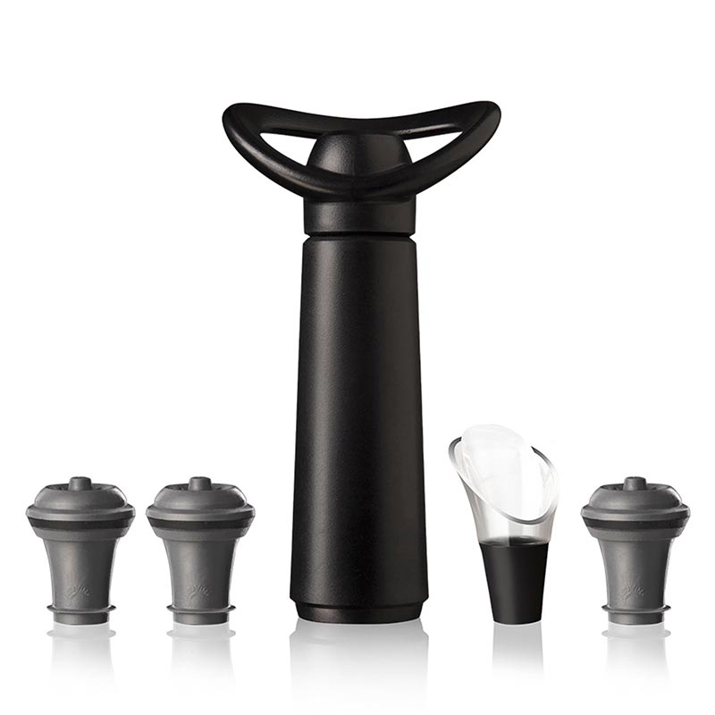 Vacu Vin Şarap Vakum Seti, Concerto Siyah (1 Pompa, 3 Tıpa, 1 Servis Aparatı), Kutulu