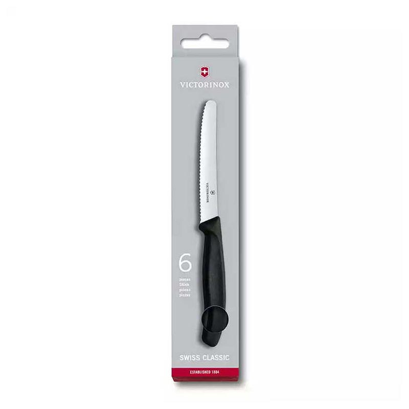 Victorinox Swiss Classic 6.7833.6 6'lı Tırtıklı Domatas ve Sofra Bıçağı, 11 cm, Siyah