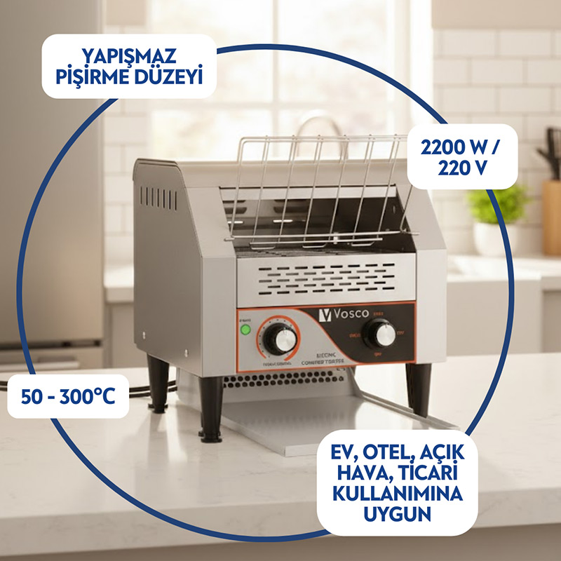 Vosco VKB-150 Konveyörlü Ekmek Kızartma Makinesi, Elektrikli