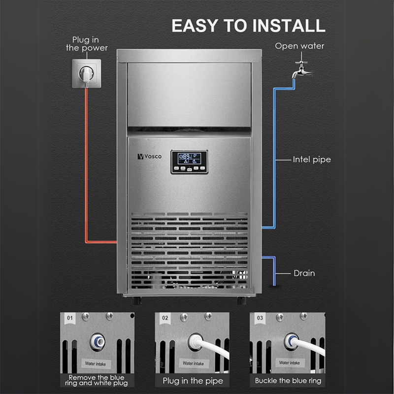 Vosco VSC-65/S Hazneli Küp Buz Makinesi, 65 kg/gün Kapasiteli