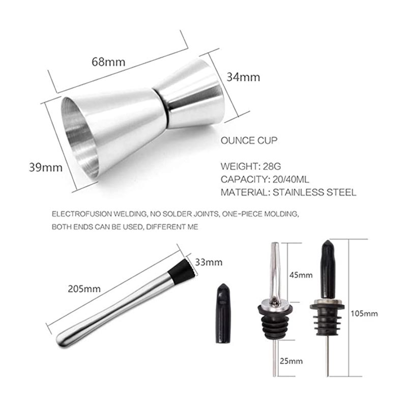 • Bu kokteyl çalkalayıcı paslanmaz çelik seti, çeşitli lezzetli kokteyller oluşturmak için kullanabilirsiniz.